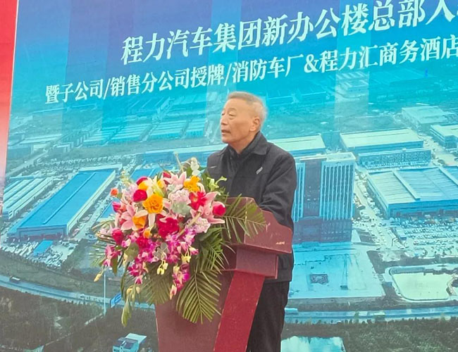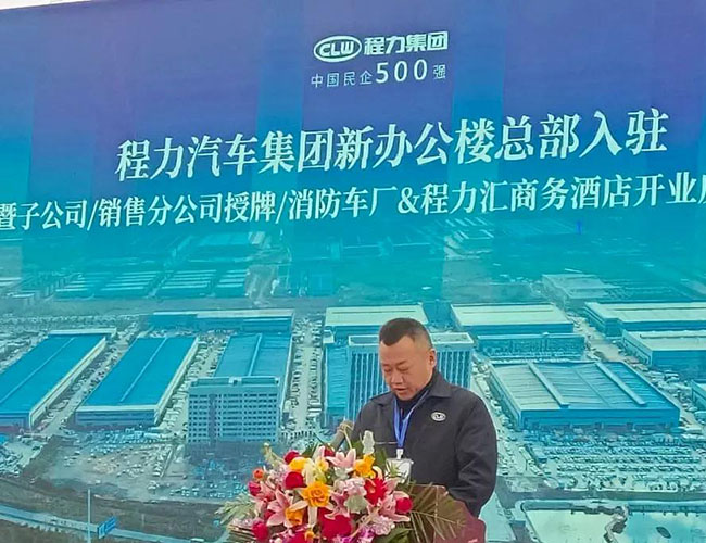 在程力集團(tuán)新廠辦公大樓總部入駐慶典會(huì)上,集團(tuán)總經(jīng)理程阿羅為程力消防車公司總經(jīng)理汪東洋,舉行了消防器材廠開業(yè)授牌儀式,汪東洋總經(jīng)理作了表態(tài)和發(fā)言。