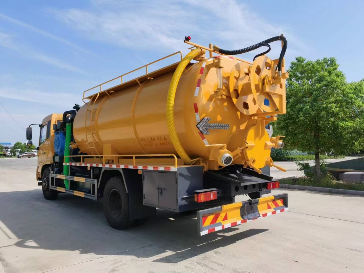 | 上裝配置 | 罐體容積15立方左右,清水罐5立方,其余為污水,罐體8mm厚,封頭8mm厚,舉升頂為自卸中置頂,副駕駛一側清水罐和污水罐用DN100球閥互通,另罐頂裝一個互通,副駕駛一側按照公告圖片安裝爬梯;清水罐:品孚350高壓泵,罐頂水車罐口一個,帶爬梯,高壓管100米22號高壓管,尾部液壓卷盤,左右各裝一個消防栓進水口,清水罐裝兩側各一個小球閥,罐底裝一個DN65排水閥, 吸污罐:一個散水罐口,罐體內(nèi)部鋪1.2米不銹鋼板,罐內(nèi)爬梯,罐體內(nèi)部防浪板加固,水循環(huán)泵水箱為碳鋼材質.副發(fā)濰柴375馬力配SK-30水循環(huán)泵,副駕側排150鋁合金球閥,開600小蓋排污口,尾部600小蓋左側一個150排污口,右側一個100的進料口,側邊一個100排清水,罐體尾部兩側工具箱,1根10米吸污管,箭頭燈,手動油門… | ||