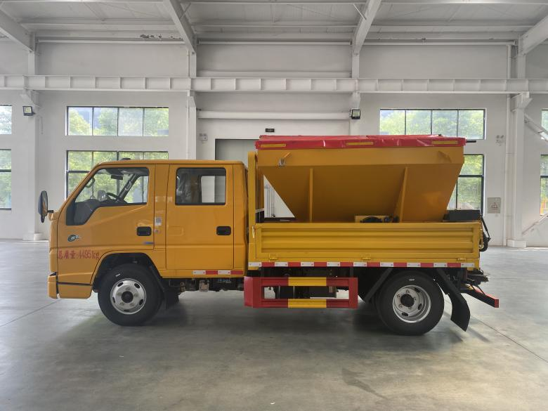 | 上裝配置 | 箱體尺寸2600*2060*400mm,箱體內裝 3立方融雪撒布機,撒布機采用 V 型料倉,結構簡單可靠,使融雪劑自動落料,出料完全,無殘留。駕駛室可加裝2米除雪鏟或者2米除雪滾。 | ||